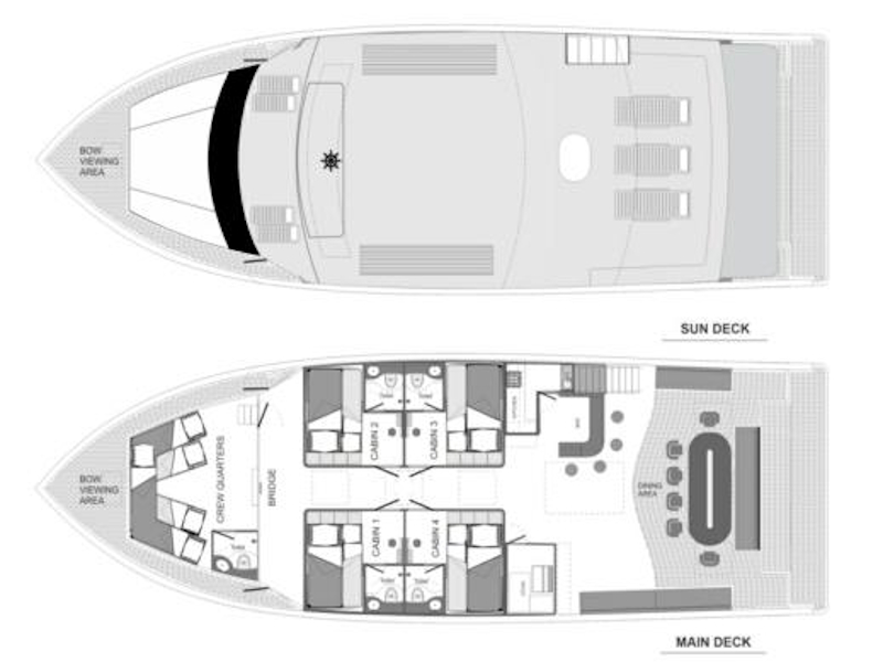 The MV Misraab accommodates up to eight adults and is operated by a friendly and attentive crew of five. A special highlight is our excellent chef, who prepares fresh and delicious meals every day, ensuring a truly enjoyable culinary experience on board.